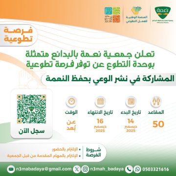ديسمبر 29, 2025 أحداث لا يوجد تعليق 52 الآراء لمن يرغب بالانضمام إلى الفرصة التطوعية عن بعد – المشاركة في نشر الوعي بحفظ النعم رابط المشاركة